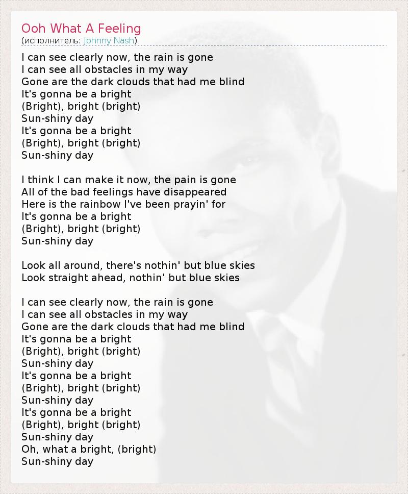 А как ты думаешь, о чем песня "Ooh What A Feeling" ?