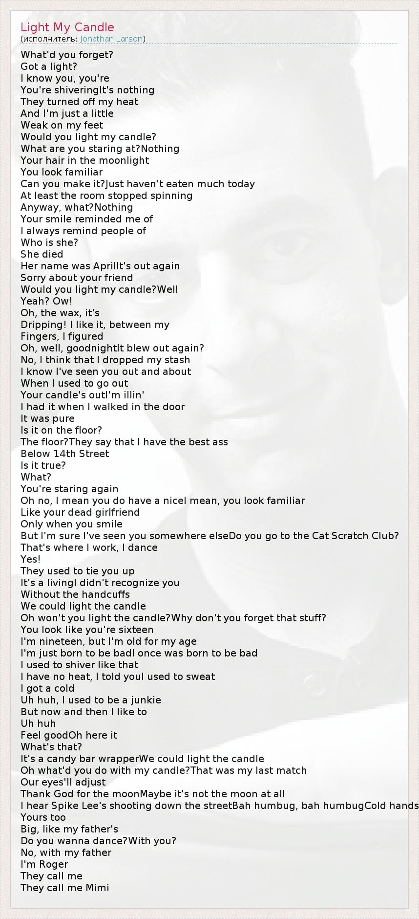 А как ты думаешь, о чем песня "Light My Candle" ?