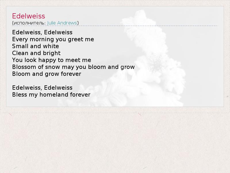 А как ты думаешь, о чем песня "Edelweiss" ?