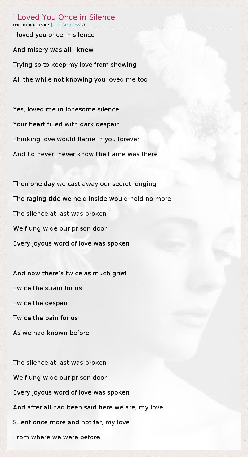 ГлавнаяИсполнителиJulie AndrewsI Loved You Once in Silence