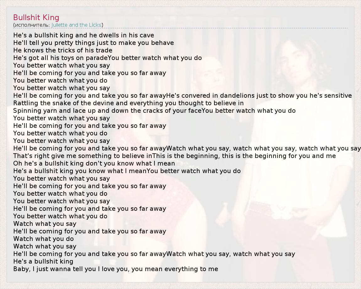 А как ты думаешь, о чем песня "Bullshit King" ?