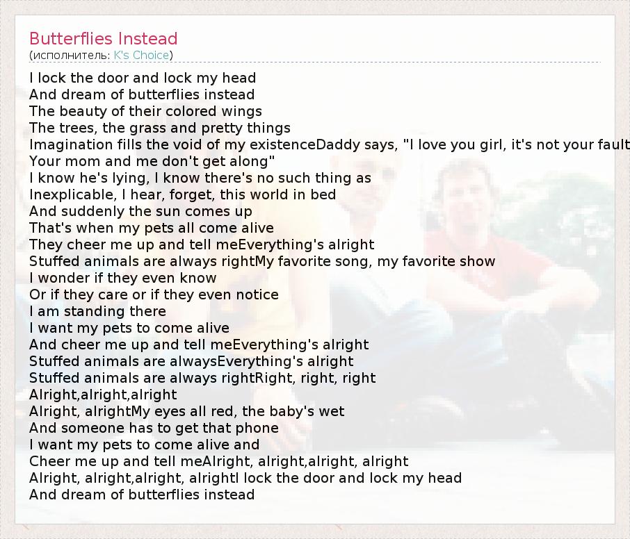 А как ты думаешь, о чем песня "Butterflies Instead" ?