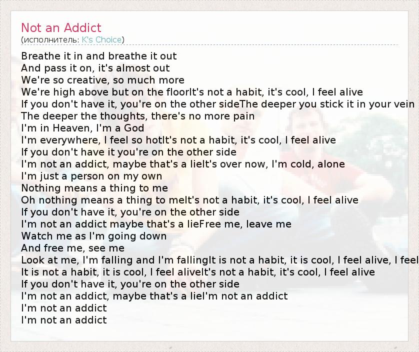 А как ты думаешь, о чем песня "Not an Addict" ?