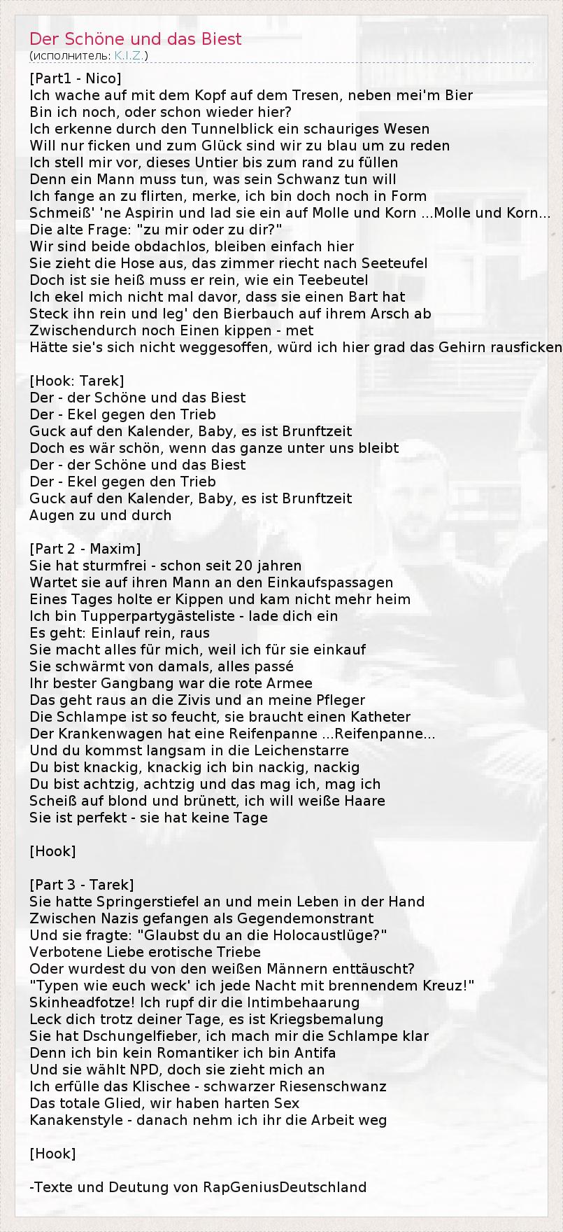 ГлавнаяИсполнителиK.I.Z.Der Schöne und das Biest