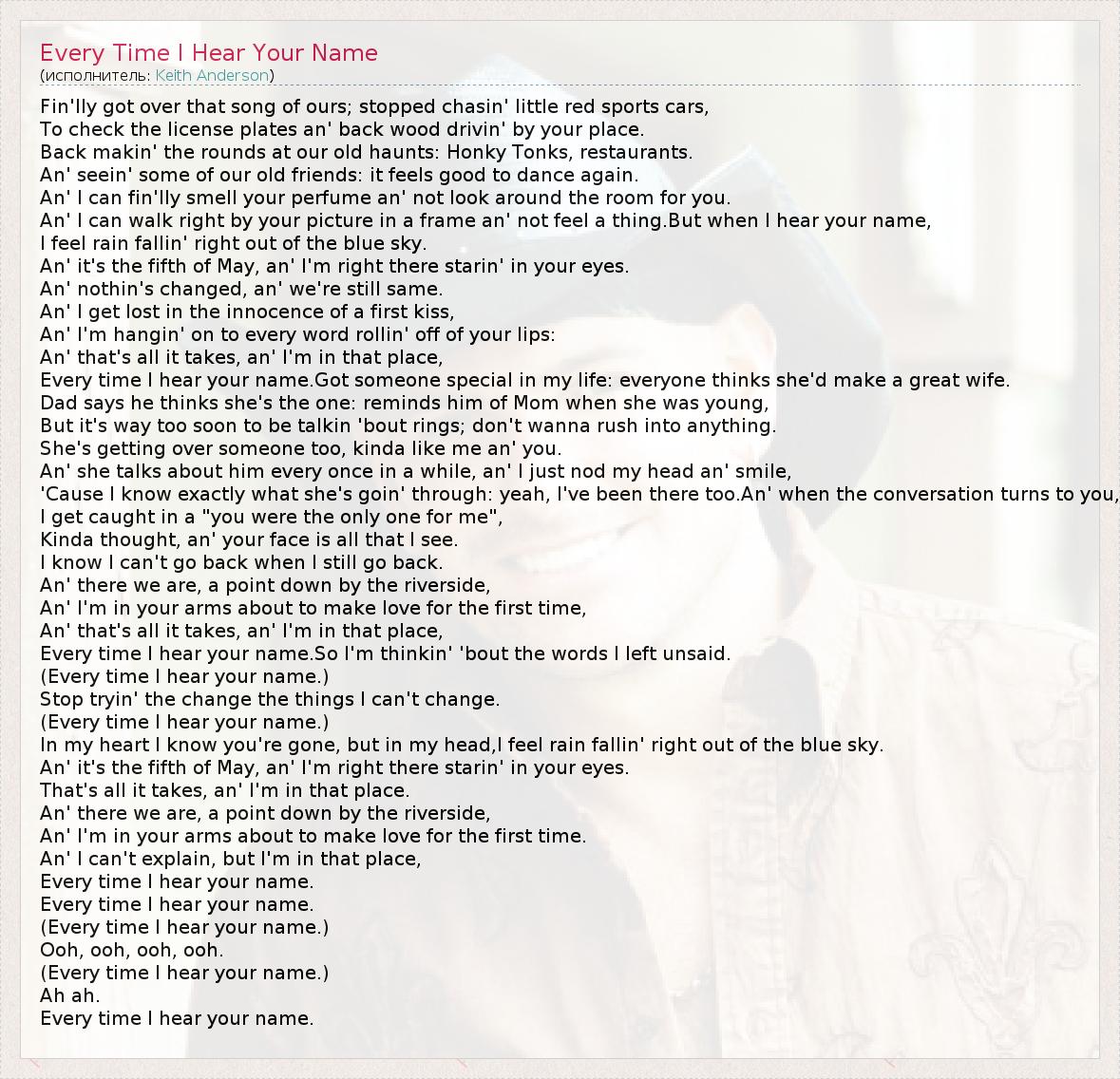 ГлавнаяИсполнителиKeith AndersonEvery Time I Hear Your Name