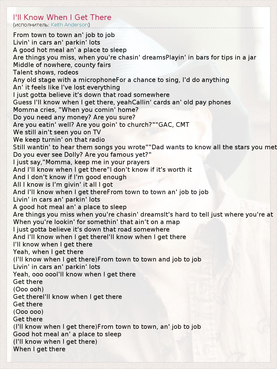 ГлавнаяИсполнителиKeith AndersonI'll Know When I Get There