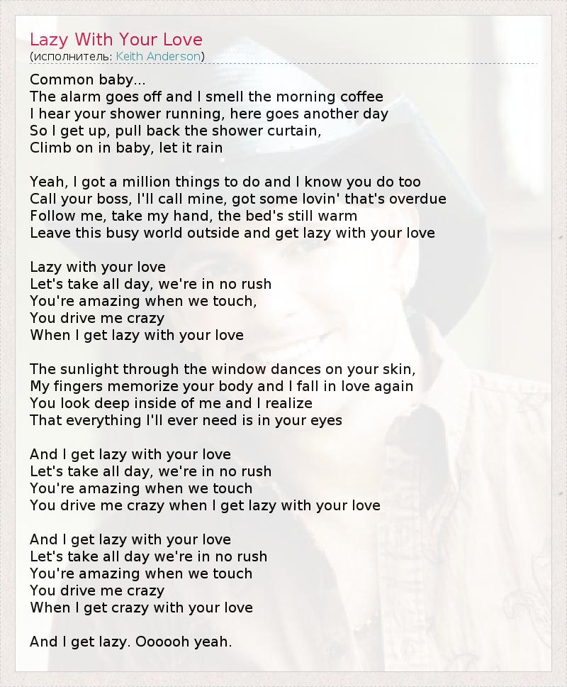 А как ты думаешь, о чем песня "Lazy With Your Love" ?