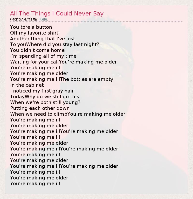 А как ты думаешь, о чем песня "All The Things I Could Never Say" ?
