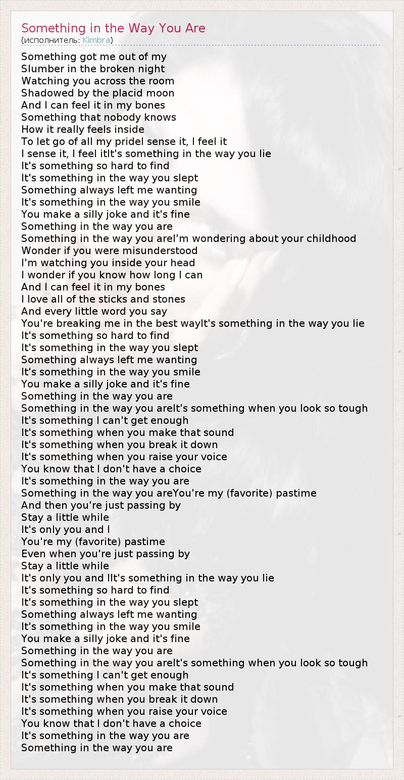 А как ты думаешь, о чем песня "Something in the Way You Are" ?