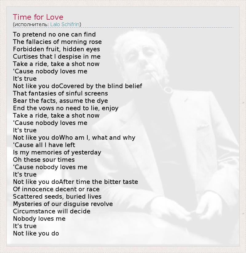 А как ты думаешь, о чем песня "Time for Love" ?