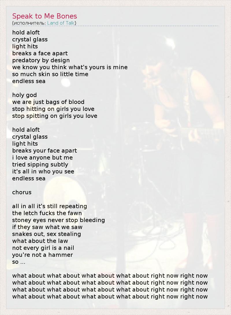 А как ты думаешь, о чем песня "Speak to Me Bones" ?