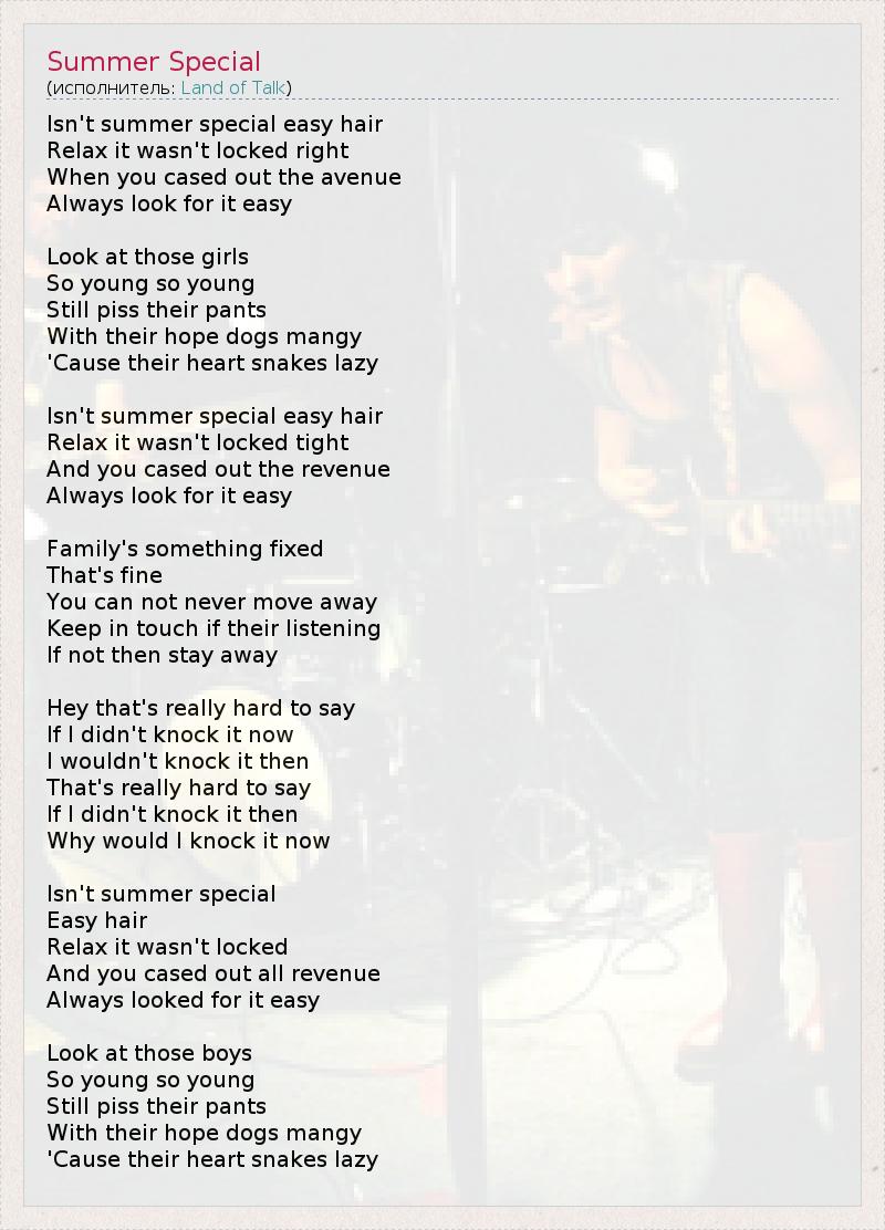 А как ты думаешь, о чем песня "Summer Special" ?