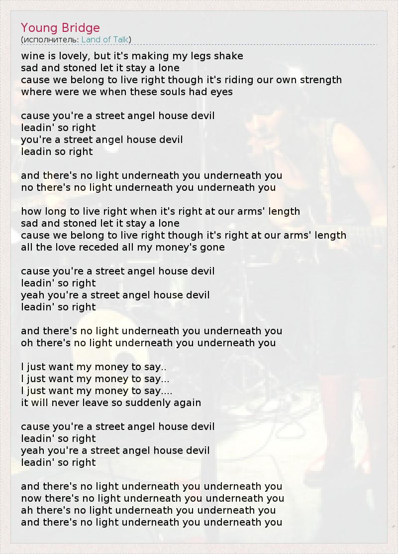 cause you're a street angel house devil