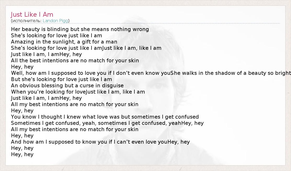 Just like I am, I amHey, hey