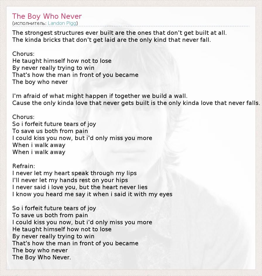 А как ты думаешь, о чем песня "The Boy Who Never" ?