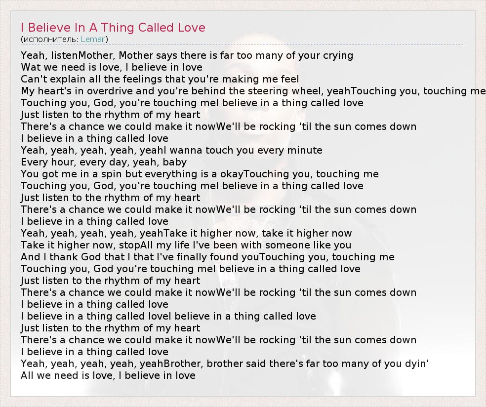 А как ты думаешь, о чем песня "I Believe In A Thing Called Love" ?