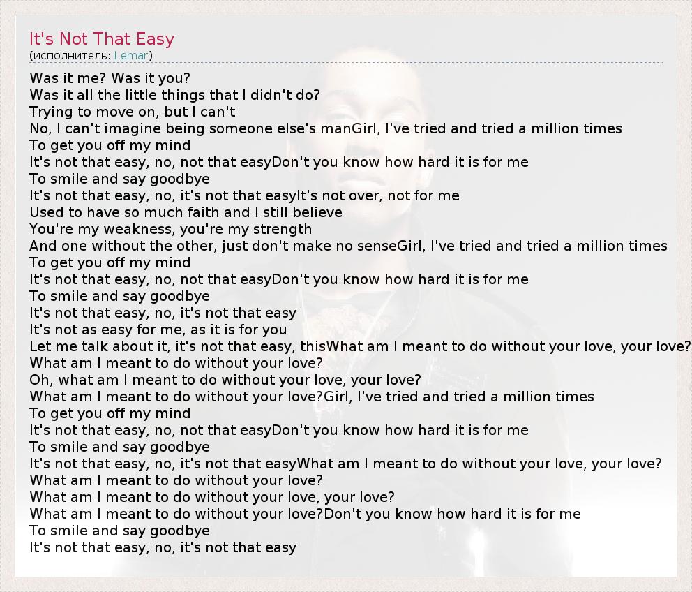 А как ты думаешь, о чем песня "It's Not That Easy" ?