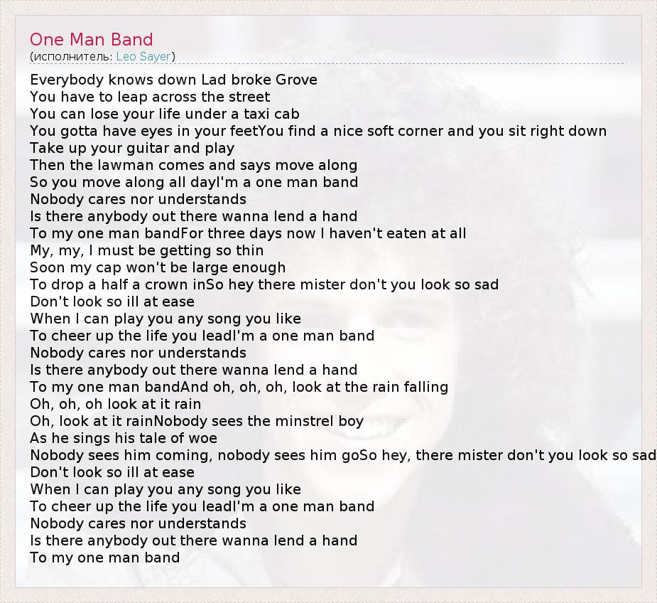 To my one man bandAnd oh, oh, oh, look at the rain falling