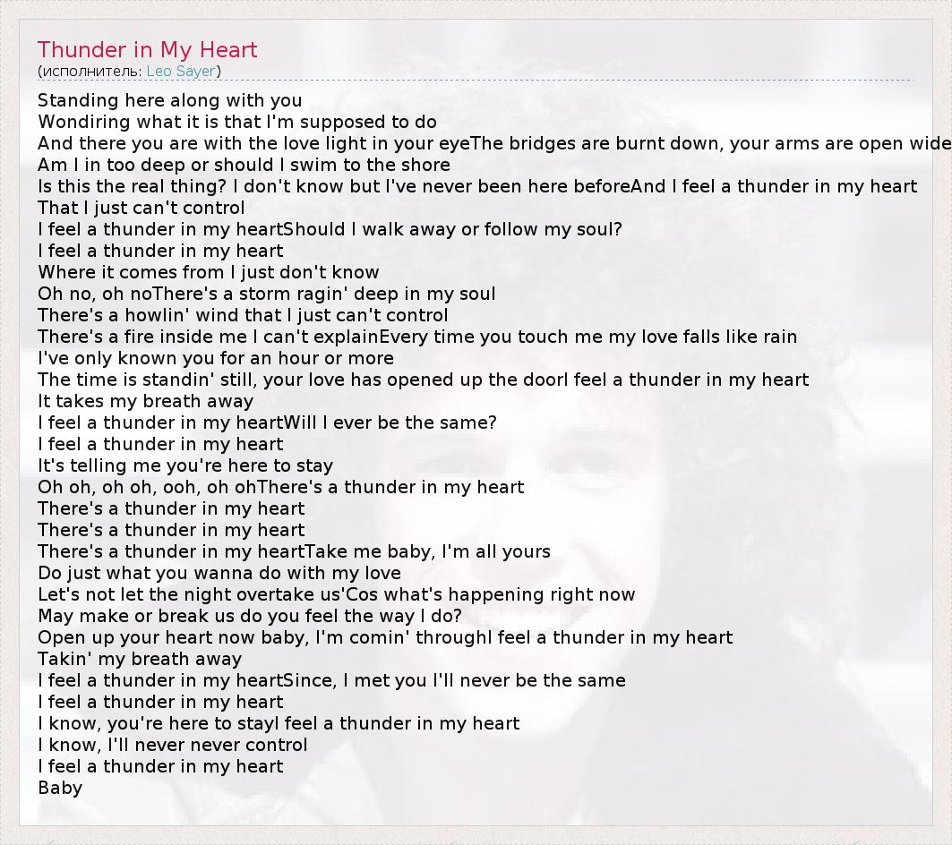 А как ты думаешь, о чем песня "Thunder in My Heart" ?