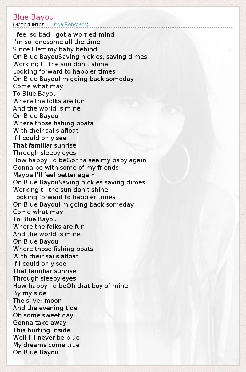 А как ты думаешь, о чем песня "Blue Bayou" ?