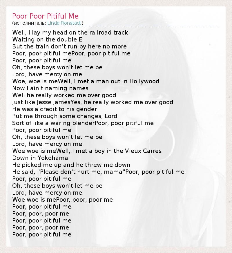 А как ты думаешь, о чем песня "Poor Poor Pitiful Me" ?