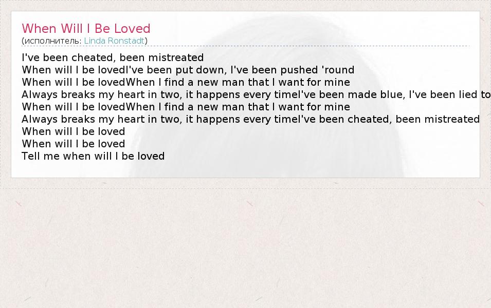 А как ты думаешь, о чем песня "When Will I Be Loved" ?