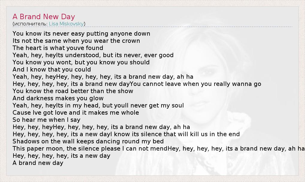 А как ты думаешь, о чем песня "A Brand New Day" ?