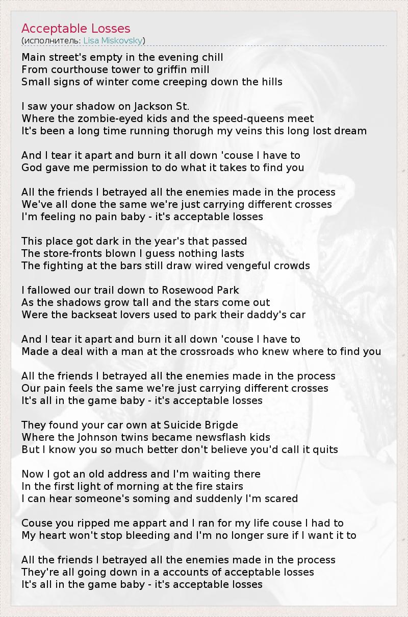 А как ты думаешь, о чем песня "Acceptable Losses" ?