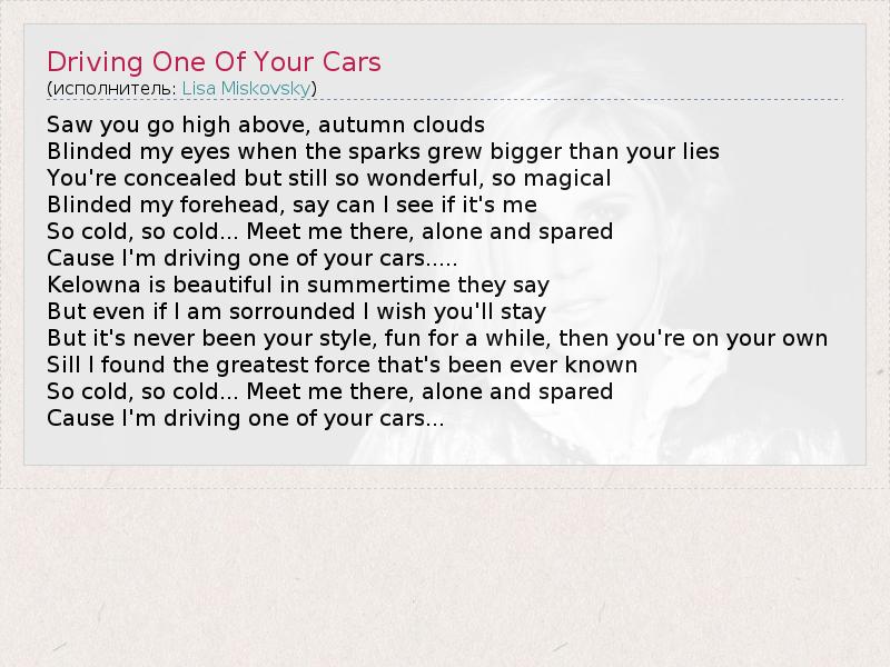 А как ты думаешь, о чем песня "Driving One Of Your Cars" ?