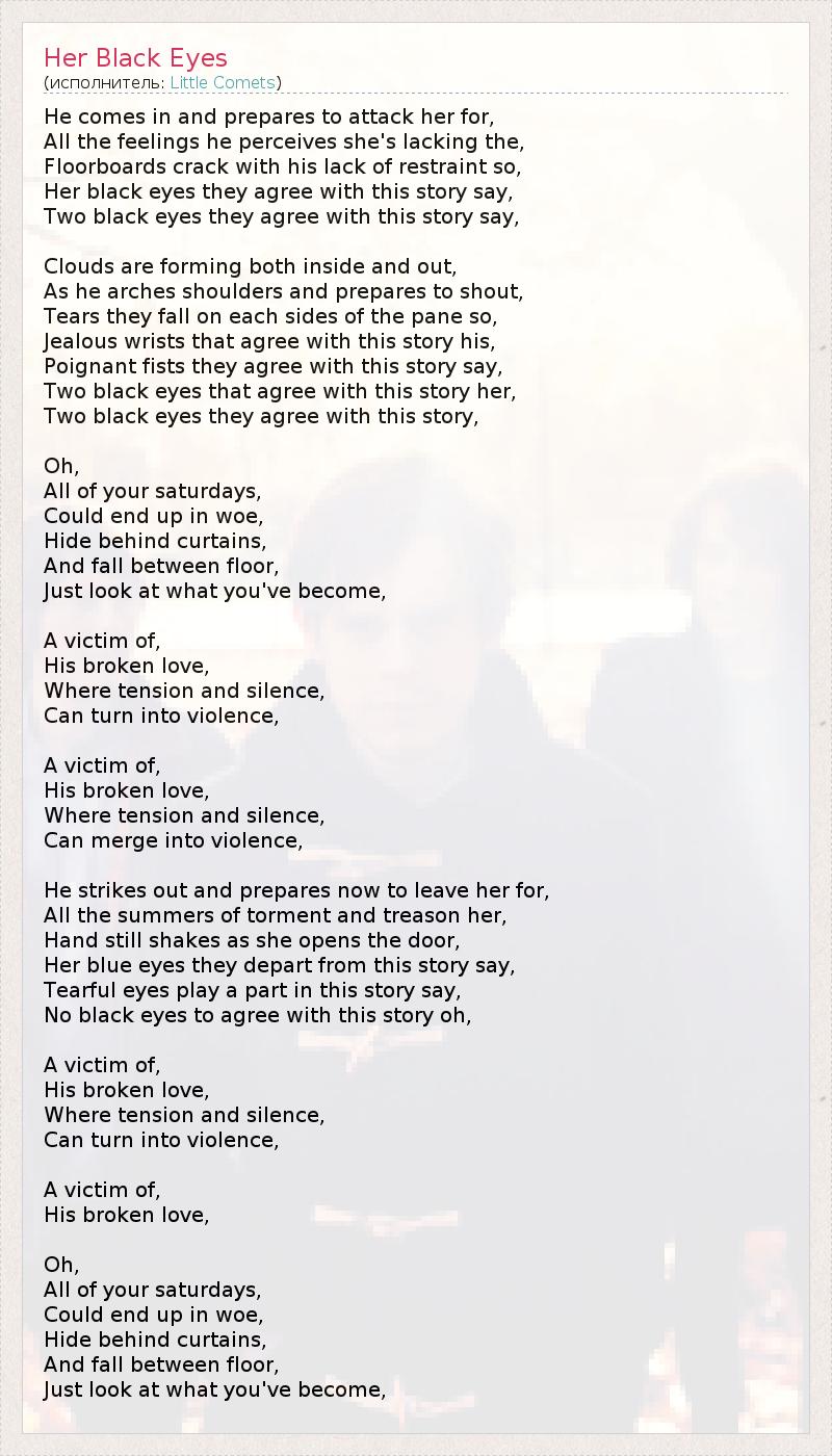 А как ты думаешь, о чем песня "Her Black Eyes" ?