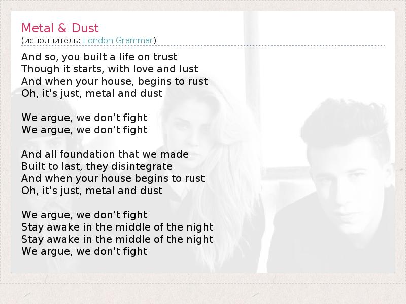 А как ты думаешь, о чем песня "Metal & Dust" ?