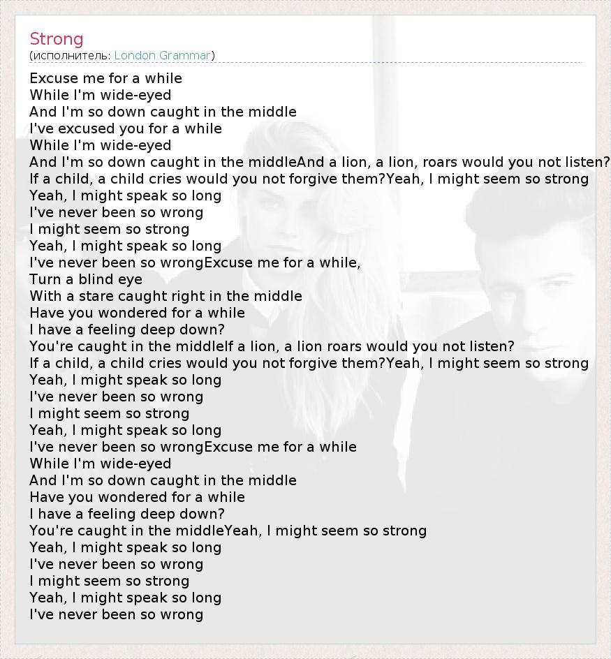 Excuse me for a while While I'm wide-eyed And I'm so down caught in the middle I've excused you for a while While I'm wide-eyed And I'm so down caught in the middleAnd a lion, a lion, roars would you not listen? If a child, a child cries would you not forgive them?Yeah, I might seem so strong Yeah, I might speak so long I've never been so wrong I might seem so strong Yeah, I might speak so long I've never been so wrongExcuse me for a while, Turn a blind eye With a stare caught right in the middle Have you wondered for a while I have a feeling deep down? You're caught in the middleIf a lion, a lion roars would you not listen? If a child, a child cries would you not forgive them?Yeah, I might seem so strong Yeah, I might speak so long I've never been so wrong I might seem so strong Yeah, I might speak so long I've never been so wrongExcuse me for a while While I'm wide-eyed And I'm so down caught in the middle Have you wondered for a while I have a feeling deep down? You're caught in the middleYeah, I might seem so strong Yeah, I might speak so long I've never been so wrong I might seem so strong Yeah, I might speak so long I've never been so wrong