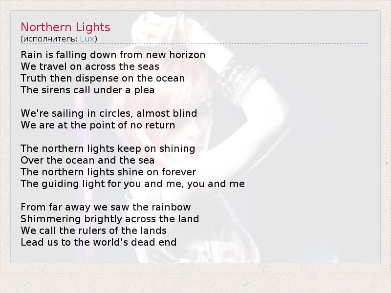А как ты думаешь, о чем песня "Northern Lights" ?
