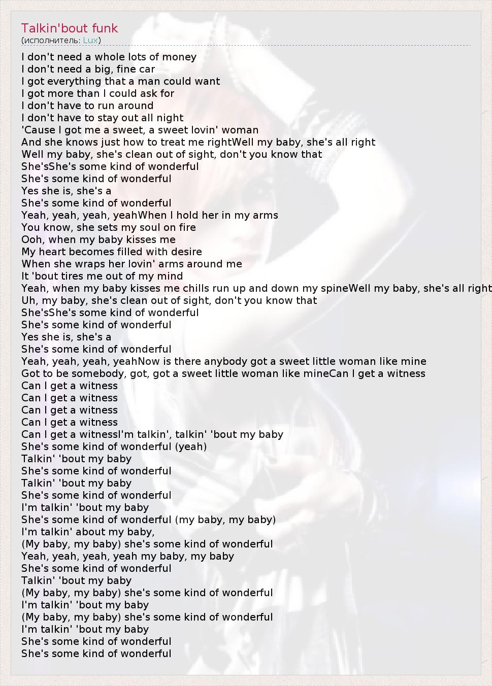 А как ты думаешь, о чем песня "Talkin'bout funk" ?