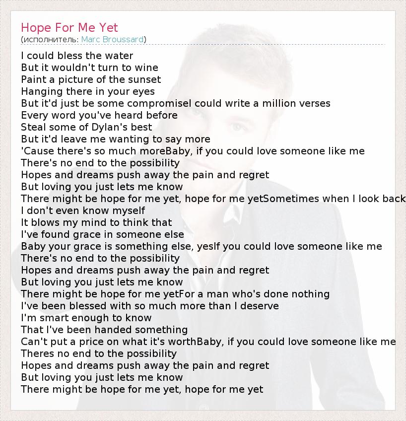 А как ты думаешь, о чем песня "Hope For Me Yet" ?