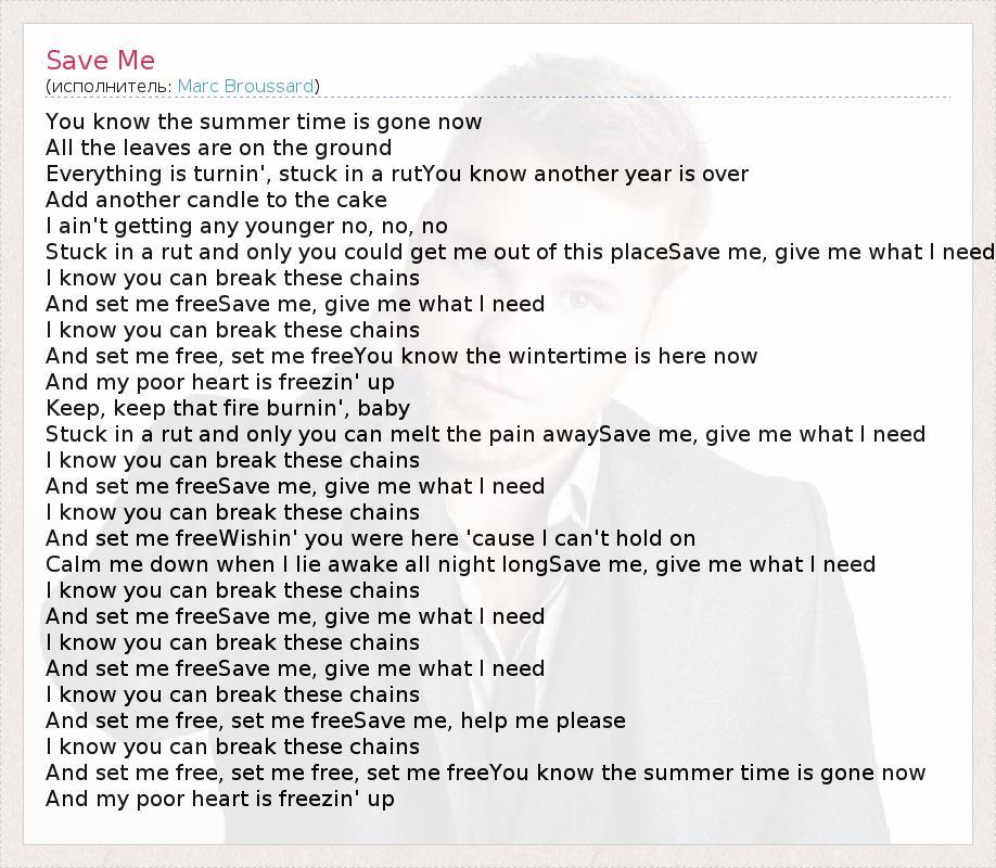 And set me free, set me free, set me freeYou know the summer time is gone now