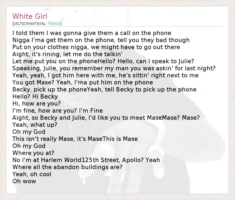 А как ты думаешь, о чем песня "White Girl" ?