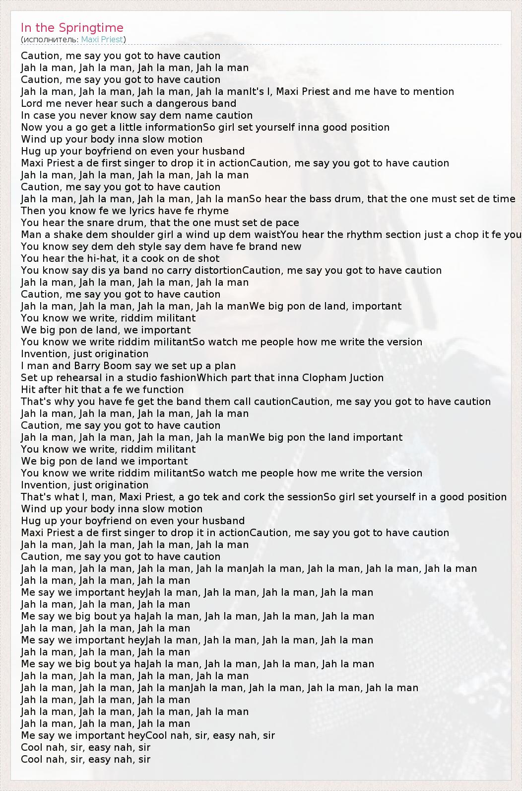Maxi Priest a de first singer to drop it in actionCaution, me say you got to have caution