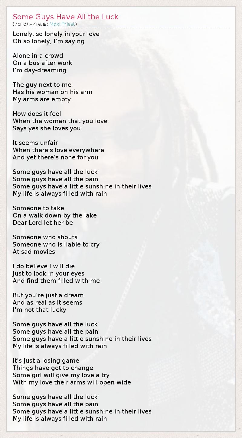 ГлавнаяИсполнителиMaxi PriestSome Guys Have All the Luck