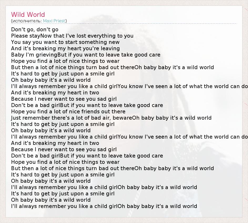 But then a lot of nice things turn bad out thereOh baby baby it's a wild world