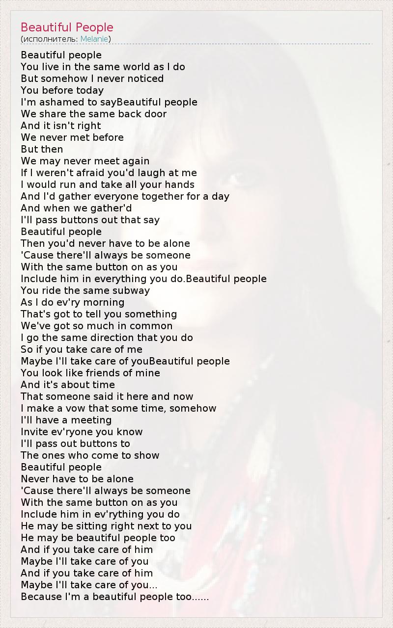 А как ты думаешь, о чем песня "Beautiful People" ?