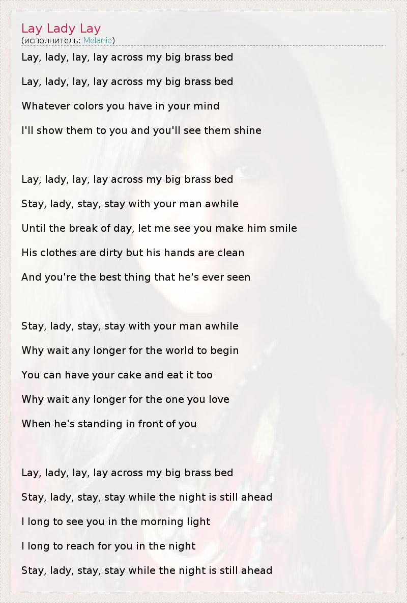 А как ты думаешь, о чем песня "Lay Lady Lay" ?