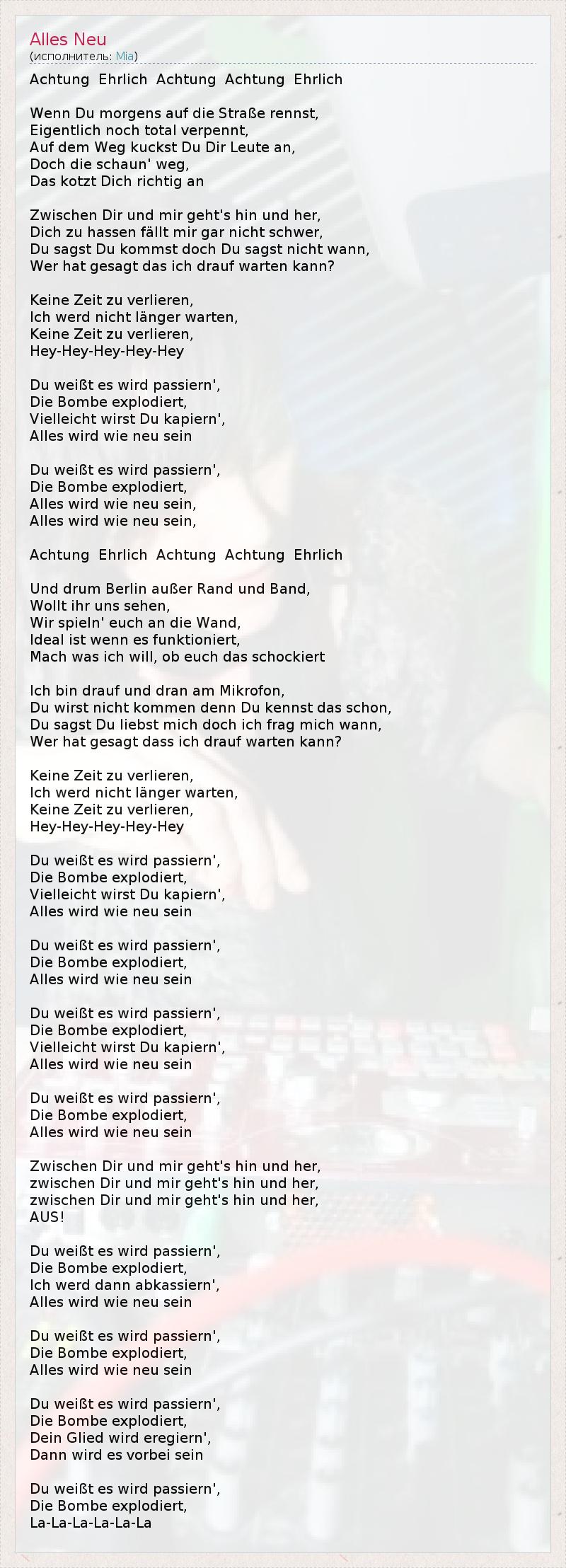 А как ты думаешь, о чем песня "Alles Neu" ?