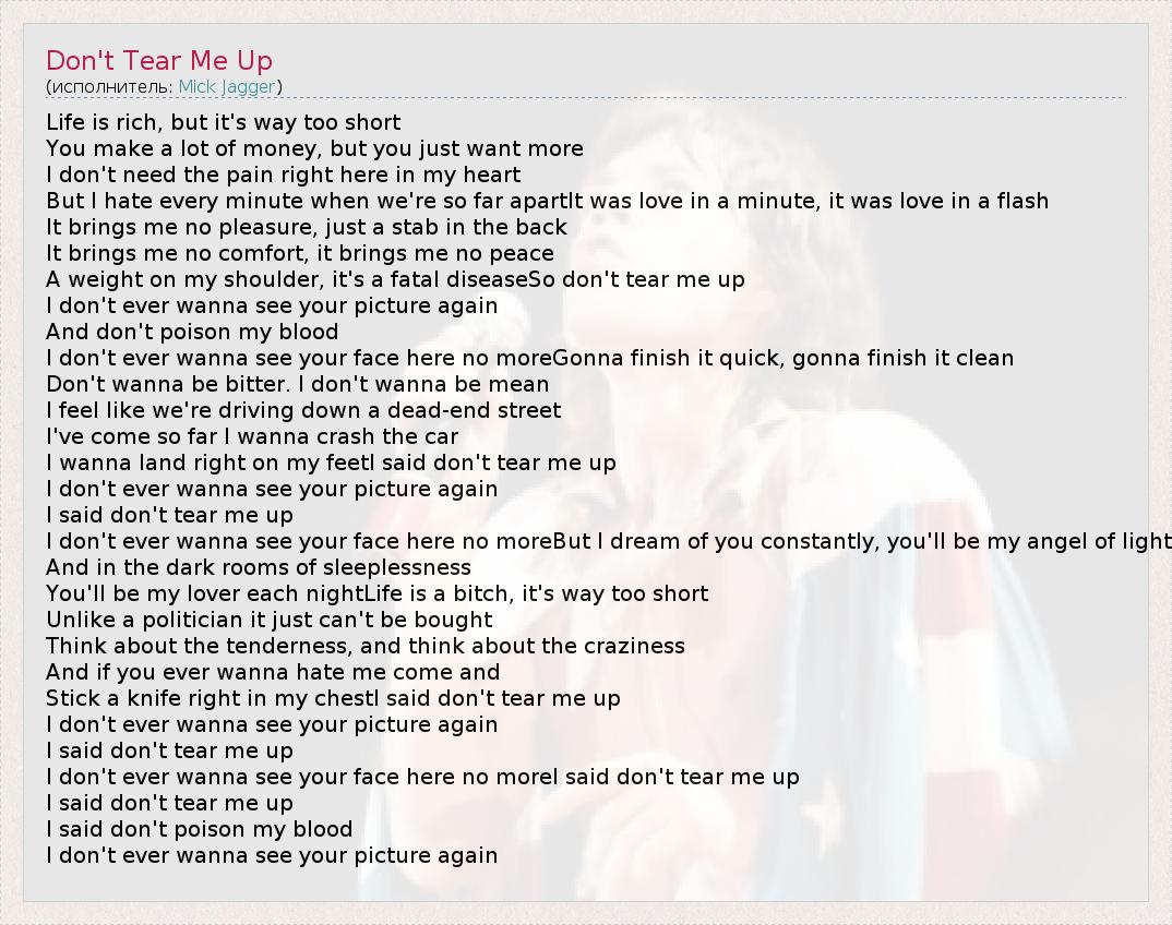 А как ты думаешь, о чем песня "Don't Tear Me Up" ?