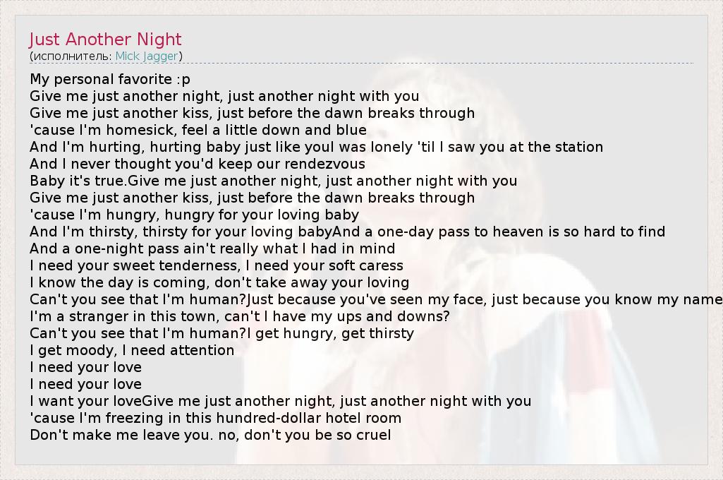 А как ты думаешь, о чем песня "Just Another Night" ?