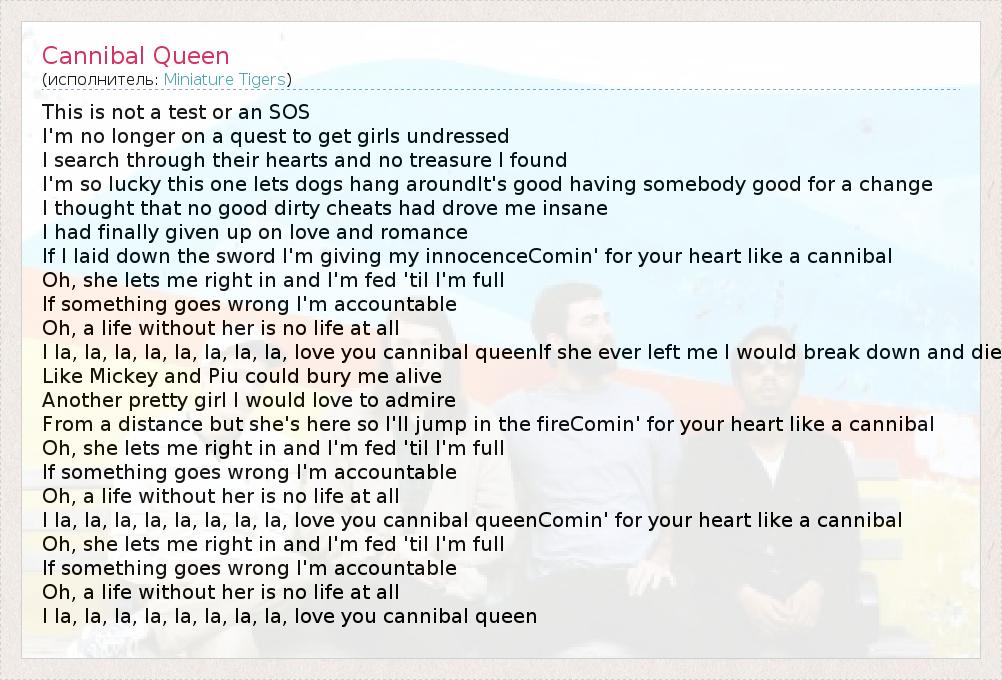 А как ты думаешь, о чем песня "Cannibal Queen" ?