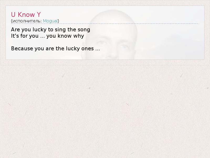 Are you lucky to sing the song It's for you ... you know why Because you are the lucky ones ...