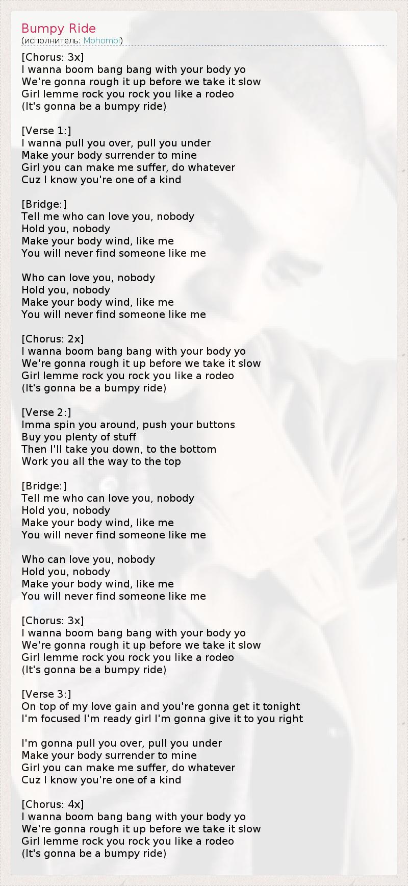 А как ты думаешь, о чем песня "Bumpy Ride" ?