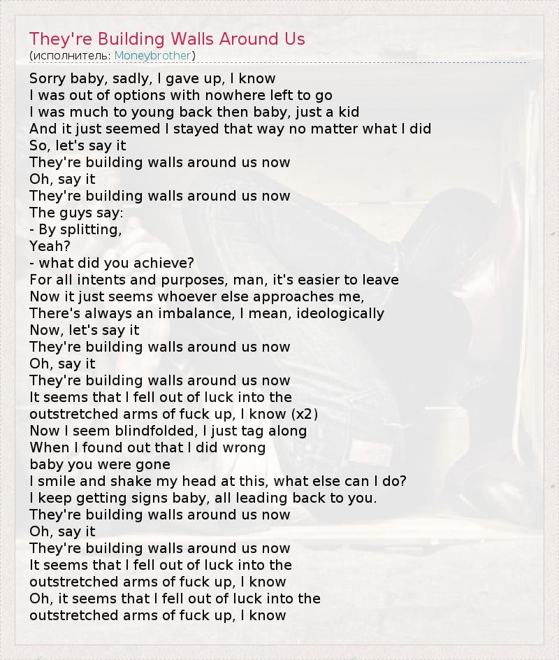 ГлавнаяИсполнителиMoneybrotherThey're Building Walls Around Us