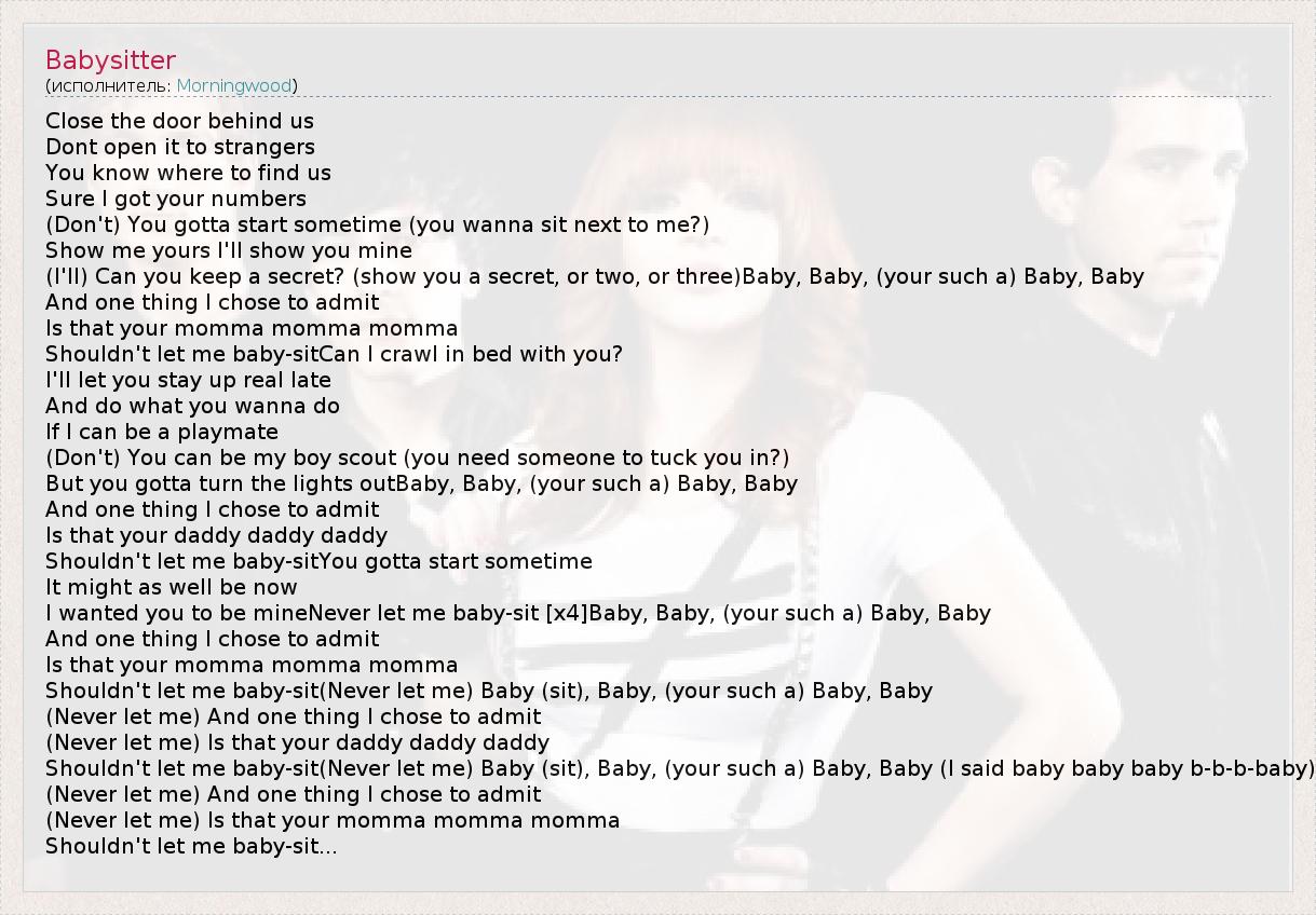 Shouldn't let me baby-sitCan I crawl in bed with you?